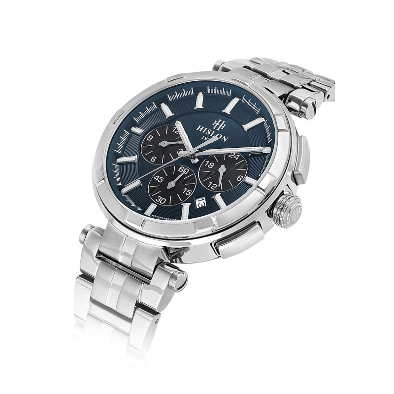 Hislon Erkek Kol Saati DT202S-11SS 43 mm Kasa Çapı, Quartz Mekanizma, 5 ATM Su Geçirmezlik, Safir Cam, Paslanmaz Çelik Kordon, 2+1 Yıl Marka Garantili. Essas Saat güvencesi ile.